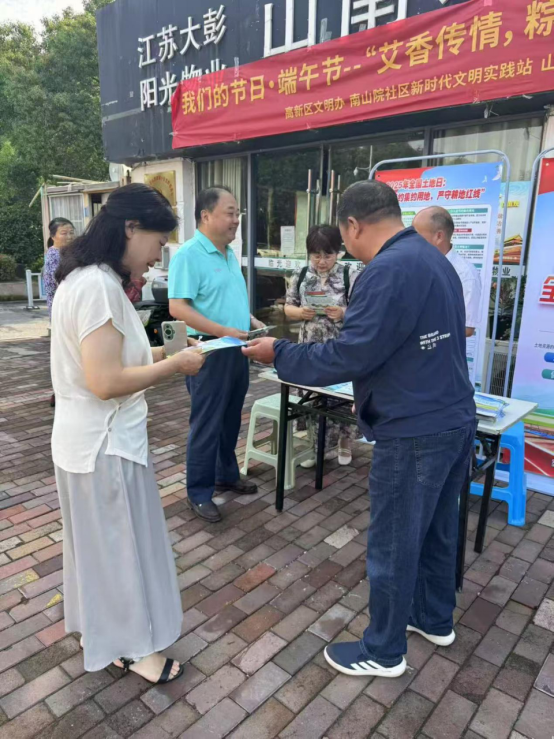 今年6月25日是第35个全国土地宣传日,主题是“节约集约用地严守耕地红线”。高新区分局按照省厅及市局文件精神,强化领导,明确任务。一是开展“全国土地日”宣传活动,布置宣传标语。6月25日上午,分局联合南山院社区在主要路段悬挂宣传标语,营造氛围,制作宣传牌,印发传单500余份。二是积极和群众沟通交流,宣传相关自然资源领域法律法规,让老百姓充分了解法规政策,多种形式向市民宣传自然资源相关法律法规和政策,收到了良好的社会效果。三是现场发放印制土地日主题的环保袋、自然资源知识宣传册、折页宣传资料等物品,将政策温度传递到居民心坎。
