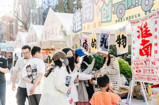 5月1日,为期3天的淮南春申里文旅街区 “鼓韵新声・灯舞淮南” 花鼓灯非遗文化艺术节如约启幕,吸引众多市民游客观赏游玩、打卡购物。