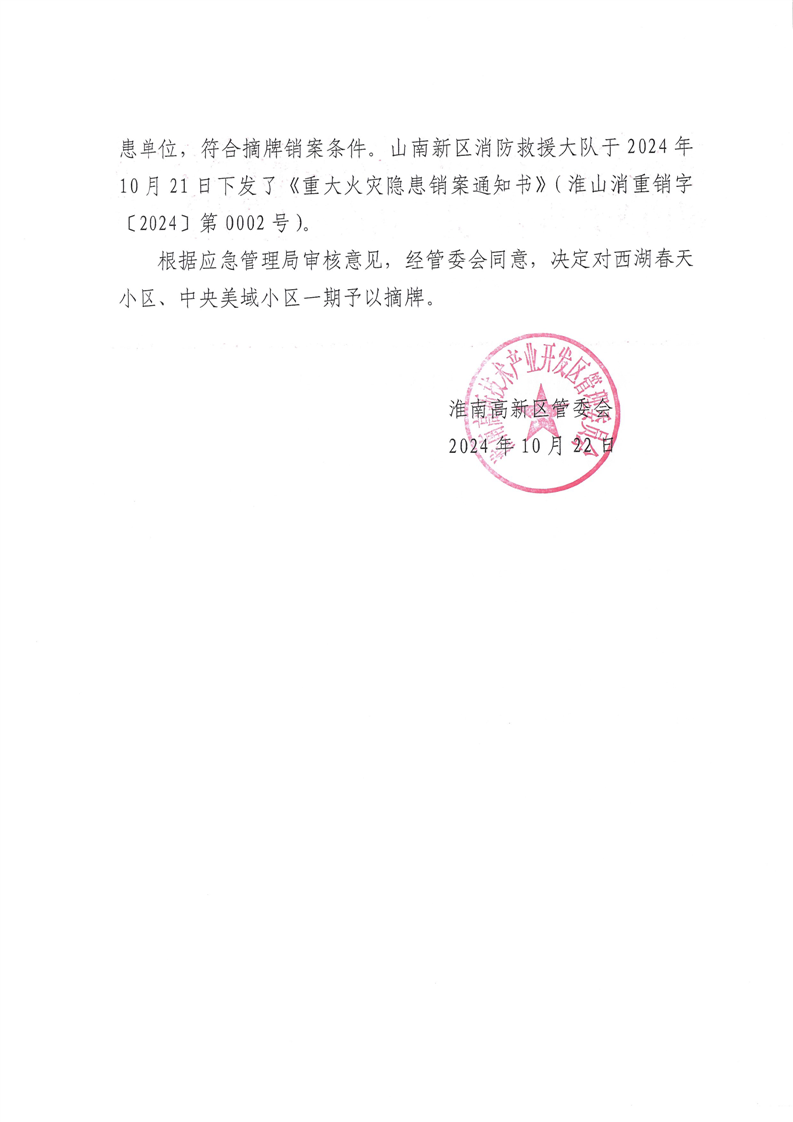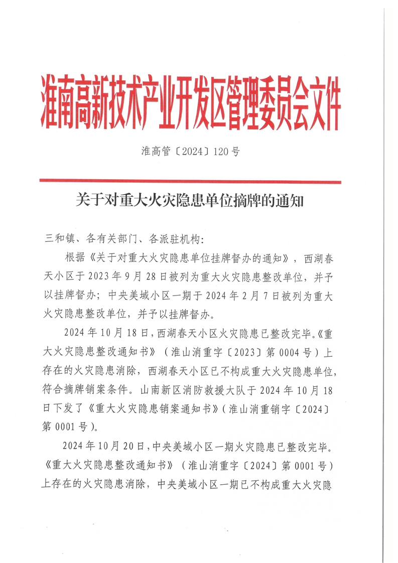 关于对重大火灾隐患单位摘牌的通知-凯发网站