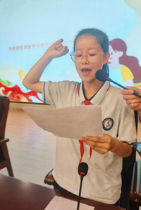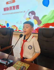 随后,一(2)中队彭承作为新队员代表发言。他用稚嫩却坚定的声音,表达了加入少先队的骄傲与喜悦,以及努力学习、争做优秀少先队员的决心。六(4)中队汤梦瑶作为老队员代表,分享了自己的成长感悟,鼓励新队员传承少先队精神,在队旗下茁壮成长。大队辅导员也通过热情洋溢的讲话,向新队员们介绍了少先队的光荣历史与使命,激励大家以实际行动践行队旗下的誓言,传承红色基因。